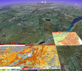 The Canada Land Inventory provides one of the most comperhensive digital map sources for resource planning ad management in Canada. The area covered by the CLI is indicated in the index map. For each of the map sheets areas land capability is mapped at 1:250'000 scale and usually at a 1:50'000 scale. This is an example for Mapsheet 31 H, Montreal. The index map on the right shows the areas mapped for land capability under the CLI. The left image shows an example of a number of overlays displayed on Google Earth.