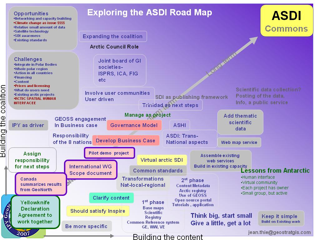 The Conference was preceded by the IEEE/ ISPRS/ OGC GEOSS Workshop discussing The GEOSS user interface: the impact of climate change and variability on biodiversity and energy in the arctic. This GEOSS workshop formed an important contribution to the ASDI road map discussions